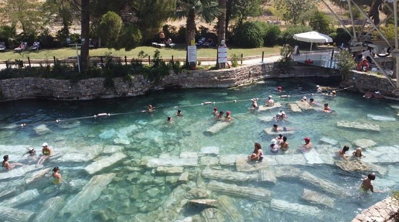 Kalkerli yapısı, kar beyazı rengi ve termal suyun sıcaklığı ile tarifsiz bir doku hissi veren Pamukkale Travertenleri’nin olduğu yerde Kleopatra havuzu olarak da bilinen antik havuzda yüzmek ise kesinlikle deneyimlenmesi gereken bir aktivitedir. Pamukkale, eşi bulunmaz güzellikteki travertenleriyle ziyaretçilerini hemen ilk görüşte adeta büyülemektedir.